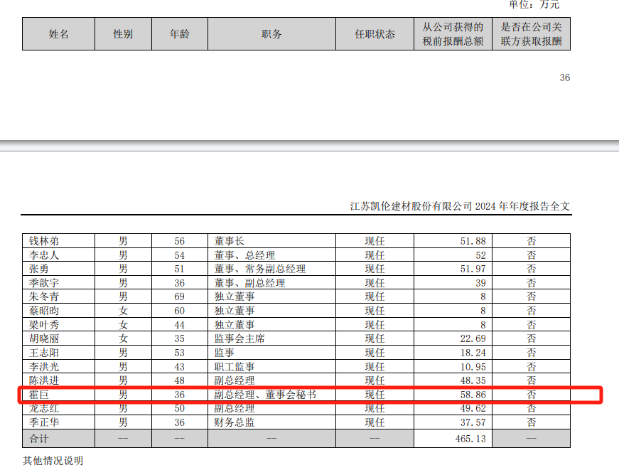 薪酬方面,2024年,霍巨从公司获得的税前报酬总额为58.86万元,略低于2023年同期薪酬为60.18万元。