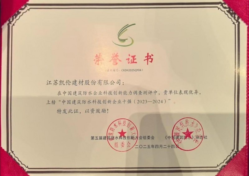 此番获奖,是对凯伦股份长久以来立足自主创新研发道路的有力认可。未来,凯伦将继续秉承“科技先锋绿色引擎”的企业宗旨,不断提升技术研发实力,提升专精特新发展水平,为广大客户提供更优质的产品,携手《中国建筑防水》杂志社持续推动行业对科技创新与进步的重视。