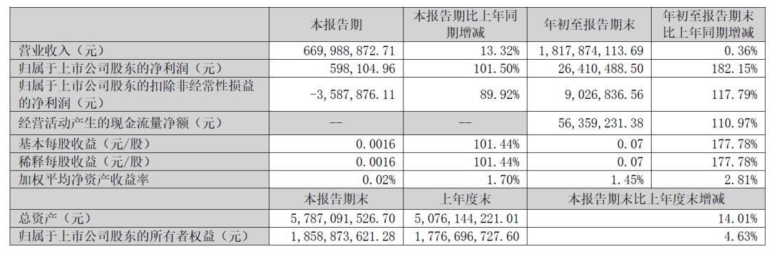日前,凯伦股份2025年第三季度业绩报告正式发布:公司在前三季度实现营业收入约18.18亿元,同比微增0.36%;归属于上市公司股东的净利润则实现约2641万元,同比大幅增长182.15%,成功实现扭亏为盈。基本每股收益为0.07元,同比增长177.78%,盈利能力和股东回报方面显著改善。延续了上半年“双主业发力,新业务表现突出”的良好发展势头。