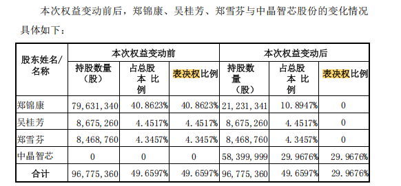 在股份转让的同时,郑锦康、吴桂芳、郑雪芬三位股东与中晶智芯签署了《表决权放弃协议》及《关于不谋求上市公司控制权的承诺函》,放弃其合计持有的上市公司股份对应的全部表决权。