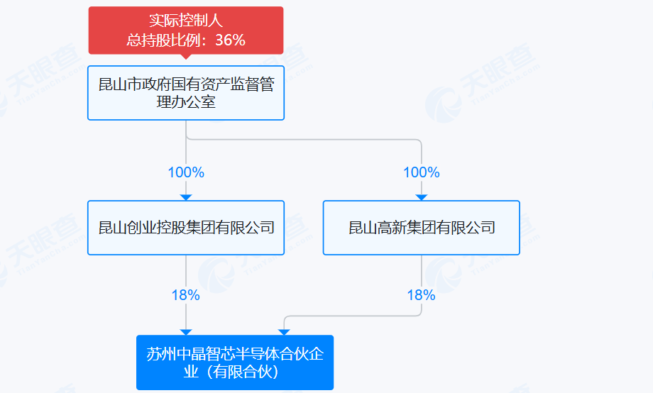 此次收购方中晶智芯3月13日刚刚成立,经营范围包括半导体器件专用设备销售、电子专用材料销售等,其背后有着昆山国资的强力支持。昆山嘉瑞创新投资合伙企业(有限合伙)持股中晶智芯40%,昆山高新集团有限公司和昆山创业控股集团有限公司分别持股18%,而后两家公司均由昆山市政府国有资产监督管理办公室全资控股。中晶智芯的实际控制人为昆山国资办。