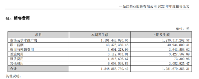 今年上半年,一品红销售费用达到6.25亿元,较2022年上半年的5.04亿元增长23.99%,销售费用率达到49.37%。