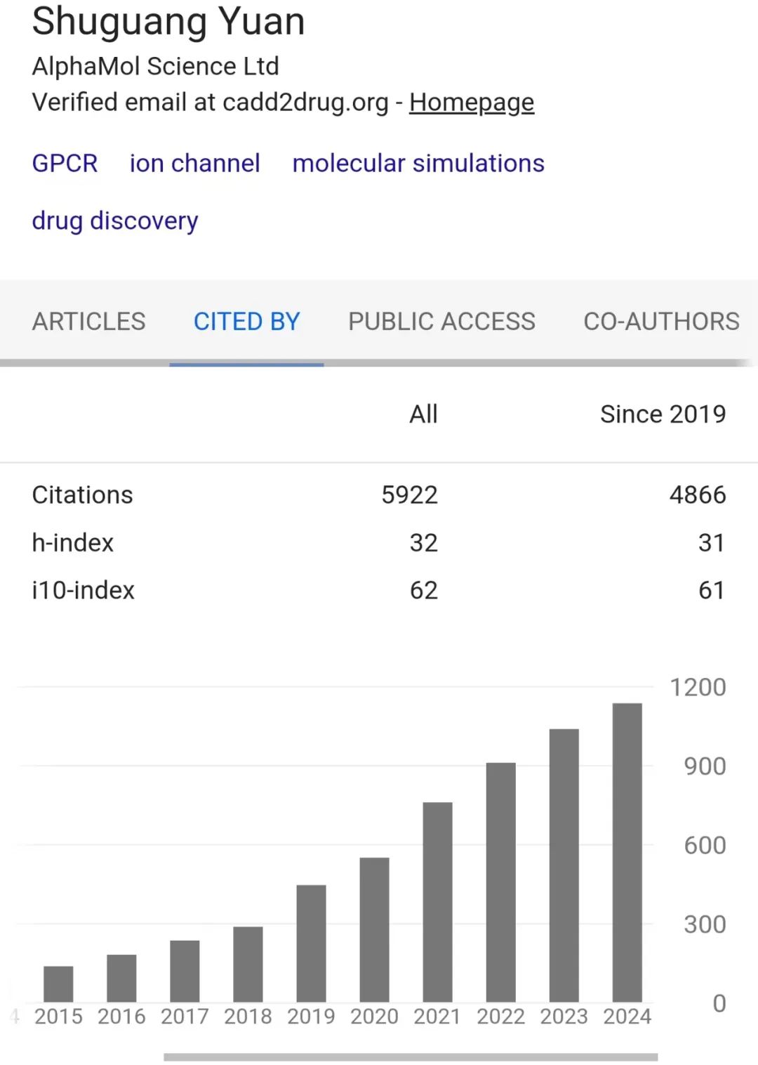 在研究领域,袁博士率先提出GPCRs的激活机制与连续水分子通路学说,并得到同行的广泛认可。2021年,袁博士带领团队参加全球GPCR 建模大赛,以高出60%的精度击败谷歌AlphaFold2,并取得大赛胜利。截止到目前,袁博士合计发表学术论文70余篇,总引用次数近6000次(H-index=32)。