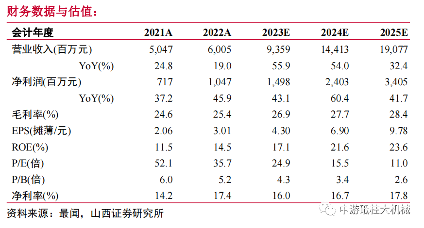 公司披露2022年报和2023年一季报。2022年,公司实现营业收入60.1亿元,同比+19%;实现归母净利润10.5亿元,同比+45.9%。23Q1实现营业收入19.3亿元,同比+41.7%;实现归母净利润3.4亿元,同比+23.2%。