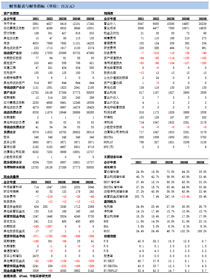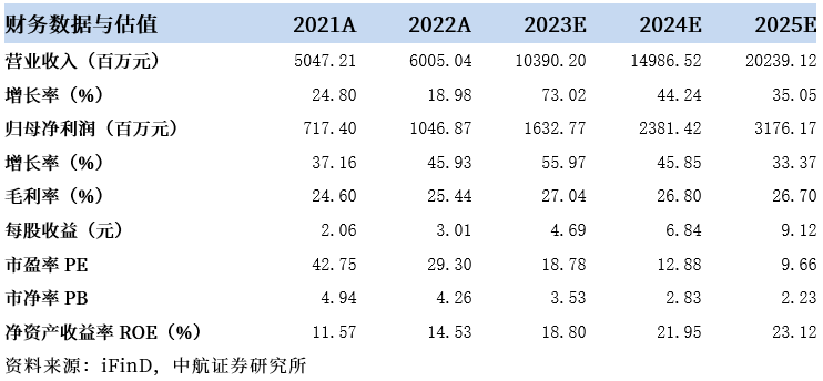 预计公司2023-25年实现营收103.90亿元/149.87亿元/202.39亿元,归母净利润16.33亿元/23.81亿元/31.76亿元,维持“买入”评级。