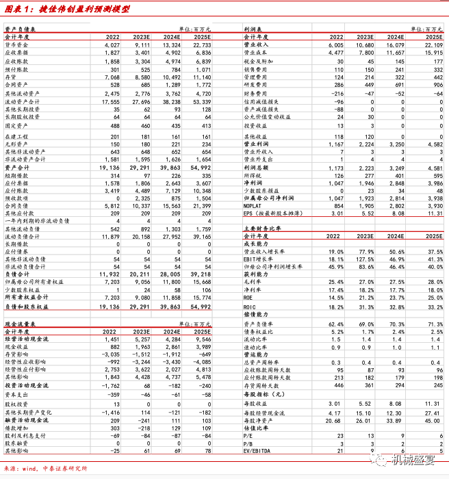 (2)钙钛矿:行业潜力巨大,公司设备处于领跑地位。目前单结钙钛矿电池制备设备端,单GW投资额达10亿以上,预计未来将降至5-7亿,即2025年钙钛矿设备市场空间有望达到150-200亿。公司在钙钛矿设备领域处于行业领先地位,2023年订单超2亿元,并且于10月份出货大面积钙钛矿薄膜立式量产设备,包括用于钙钛矿的RPD和PVD设备,此前公司的RPD设备已在该客户的钙钛矿研发线上投入使用,助力客户在钙钛矿组件上实现了超过19%的第三方认证转换效率。我们认为,在钙钛矿行业0-1的早期阶段,同业大多处于研发阶段,公司已经批量供货,进度远超同行。