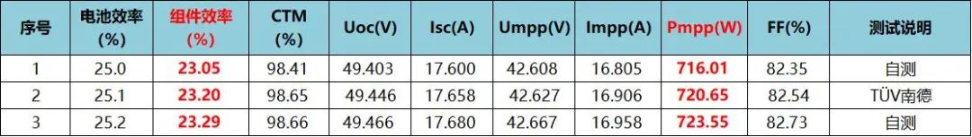 近日,经权威第三方检测认证机构TüV南德认证,捷佳伟创G12-132版型异质结组件平均功率达到了720.65W(南德新标准),组件平均转换效率23.20%,属于行业前列水平。这是公司继高速RF微晶P沉积技术、600MW异质结电池整线出货后,在异质结电池技术领域取得的又一进展。