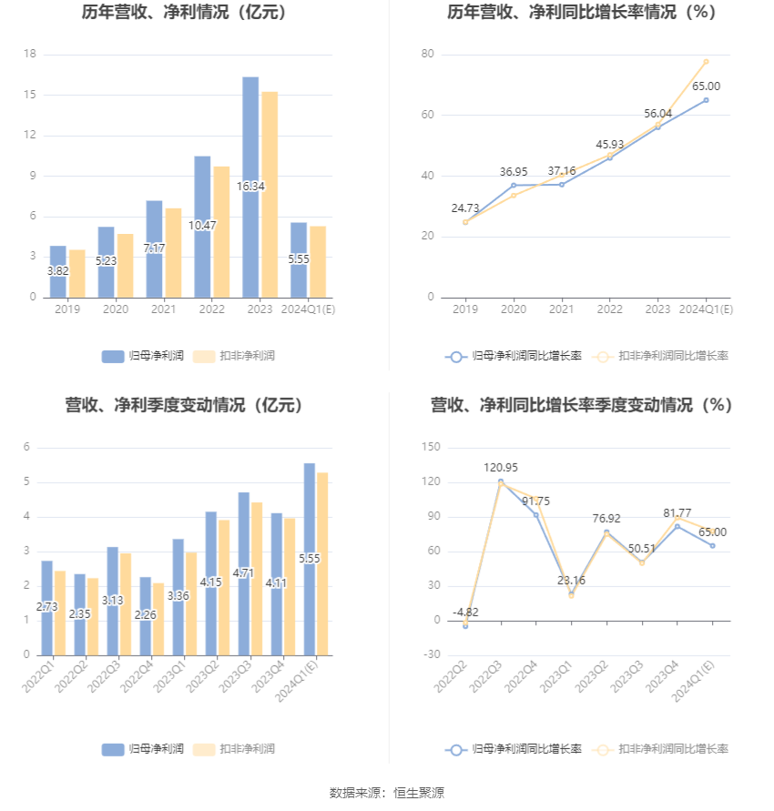 报告期内,公司在各技术路线的订单持续转化为收入;此外,随着公司规模效应以及成本管控效果持续体现,带来收入和利润的增长。