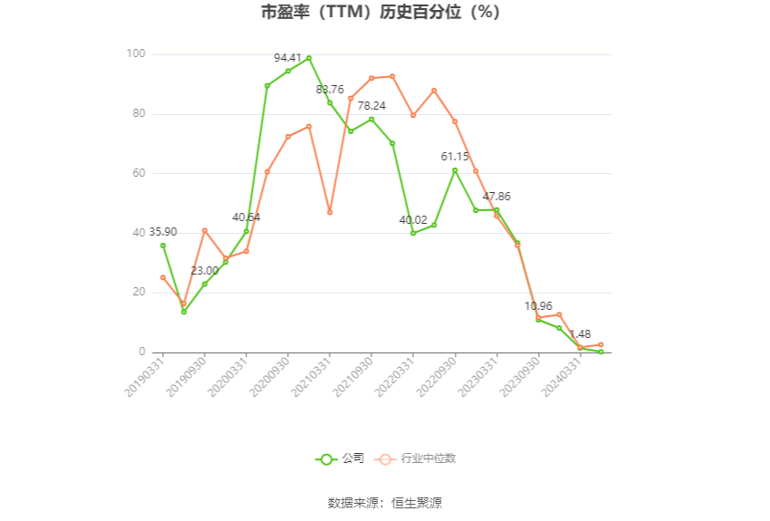 市盈率为负时,不显示当期分位数,会导致折线图中断。