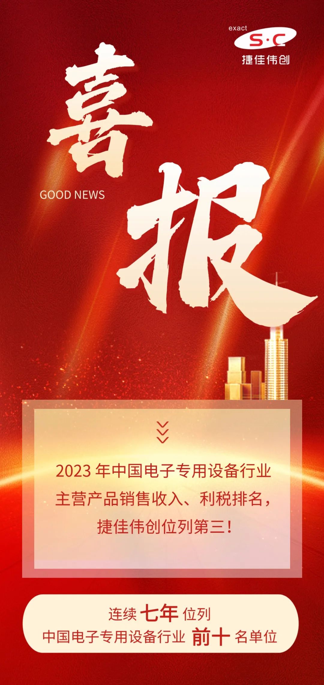 喜报!2023年中国电子专用设备行业主营产品销售收入、利税排名,捷佳伟创位列第三!