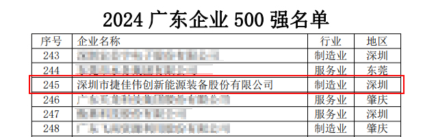 9月20日,广东省企业联合会、广东省企业家协会发布2024广东企业500强榜单及发展报告,捷佳伟创凭借卓越的市场表现和技术创新能力,荣登榜单第245名,较去年跃升83名,彰显了公司在行业内的领先地位和强劲的发展势头。