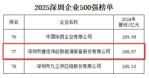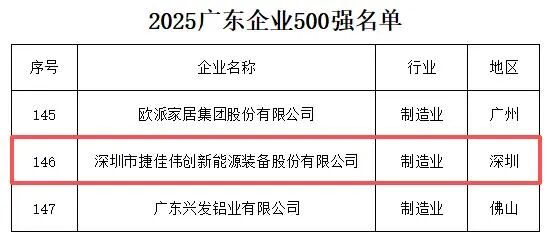 近日,“广东企业500强”“深圳企业500强”等权威榜单陆续揭晓,捷佳伟创公司以强劲的发展动能与卓越的综合实力跻身五大榜单,并以令人瞩目的跃升幅度,展现了厚积薄发的核心竞争力——