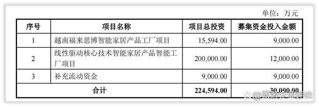 本次非公开发行募集资金3亿元,其中0.9亿元用于建设越南福来思博工厂项目;1.2亿元用于建设广西北海制造基地;0.9亿元用于补充流动资金。