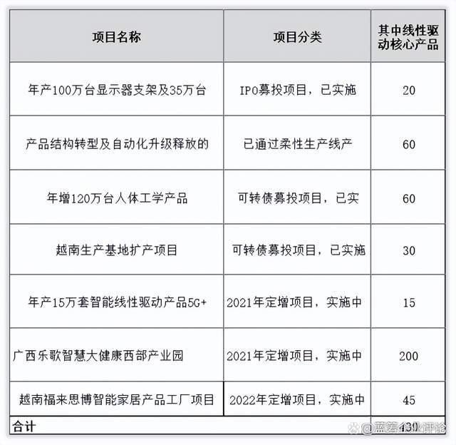 自2017年乐歌股份上市,业务从电视机、显示器支架拓展到核心产品线性驱动升降系统产品。2017年IPO募资3.45亿元,新增产能80万台/年;2020年可转债募集资金1.42亿元,新增产能90万台/年,合计新增产能170万台/年。