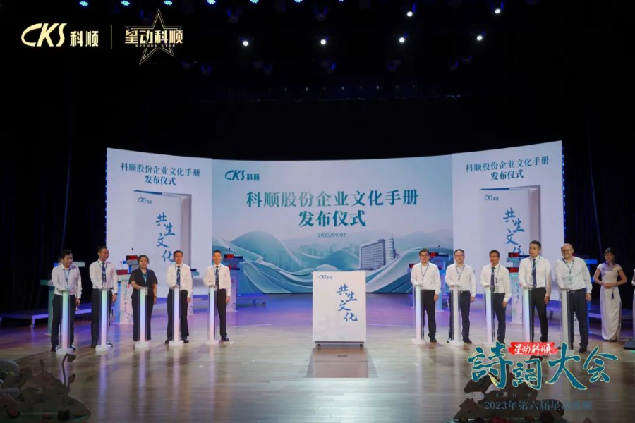 9月7日,《科顺股份企业文化手册》正式发布。科顺股份集团总裁方勇,集团副总裁毕双喜、卢嵩、汪显俊、陈冬青、段正之、叶吉、刘杉、陈华忠,法律总顾问赵晶一众领导,共同点亮发布仪式启动柱;董事长办公室主任余婉青、总裁办主任赵蓉、工程建材集团总裁王先松共同参与见证。全集团员工通过全国直播与现场亲临,集体见证点亮“共生文化”之魂和文化传承之光的重要时刻。