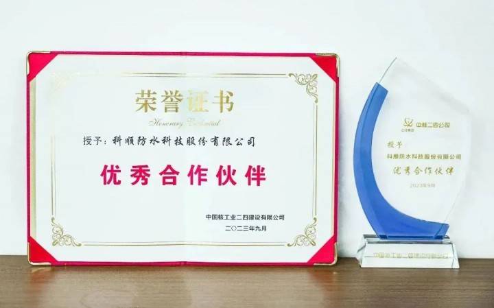 在2023年度中国核工业二四建设有限公司(简称“中核二四”)供应商交流大会上,科顺股份及科顺能源以快速响应的优质服务、高效创新的技术产品、互信共赢的合作机制,获评中核二四优秀合作伙伴称号。