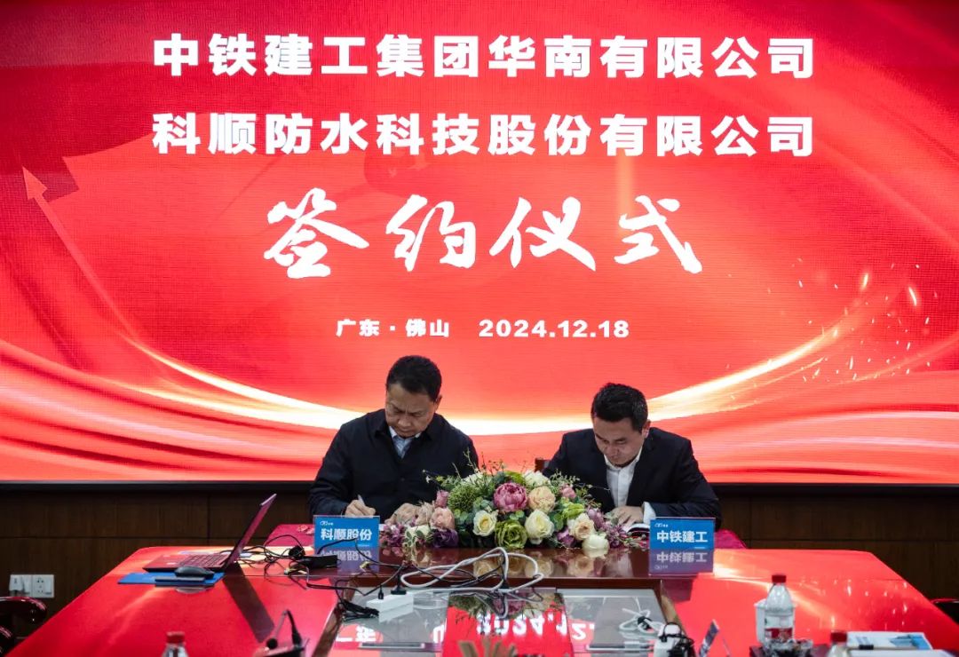 12月18日,科顺股份与中铁建工集团华南有限公司(简称“中铁建工华南公司”)正式达成战略合作关系。双方将立足佛山、深耕华南、辐射全国,通过总承包业务建立深度合作,促进建筑材料领域的紧密协作。
