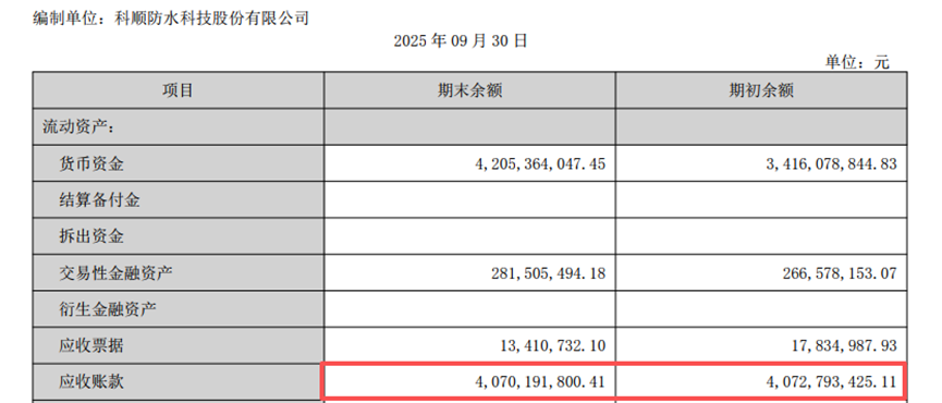 与47.03亿元的营收相比,前三季度40.7亿元的应收账款确实有点多。2024年度科顺股份的净利润为4.41亿元,这意味着科顺股份应收账款已经达到年度净利润的9.23倍。