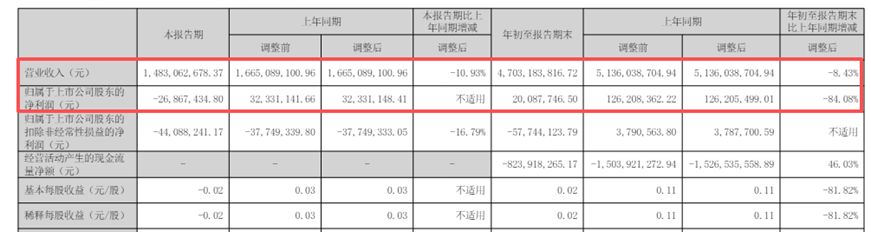2025年第三季度,科顺股份实现营业收入14.83亿元,同比下降10.93%;净利润亏损2686.74万元。受第三季度业绩影响,科顺股份前三季度营利双降,实现营收47.03亿元,同比下降8.43%;净利润2008.77万元,同比下降84.08%。