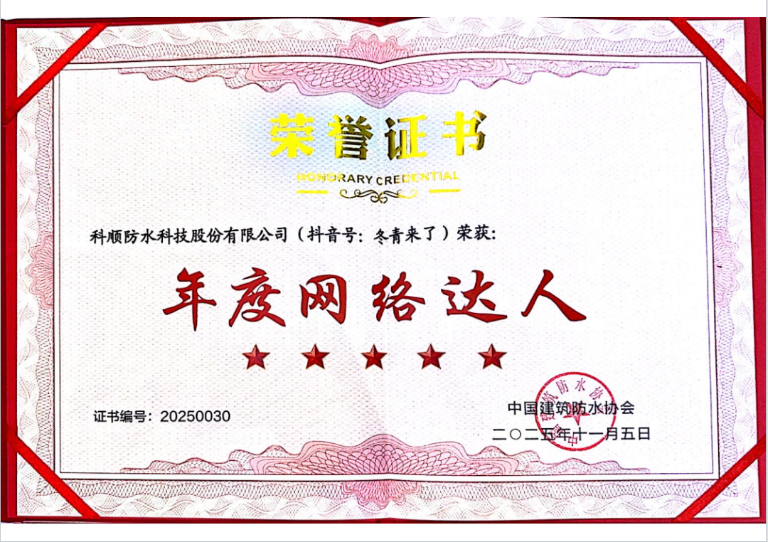 新媒体品牌效应日益显现,“年度网络达人”荣誉加身,向行业、社会传播“科顺好声音”。