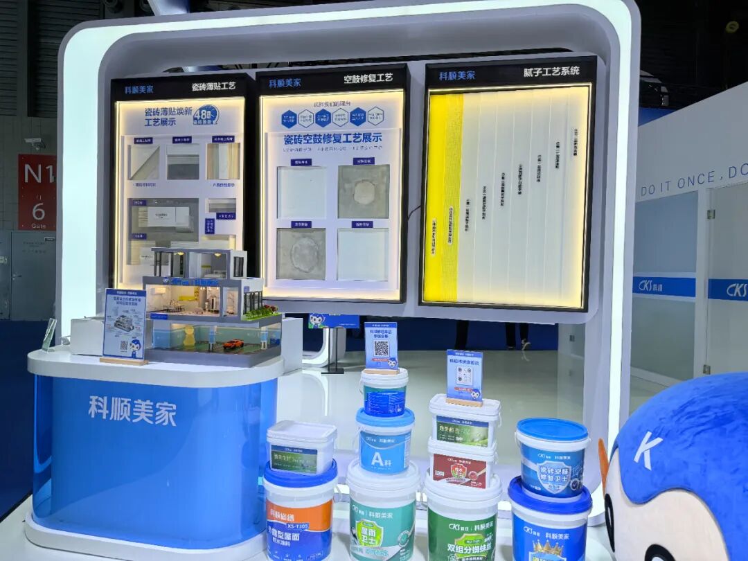 科顺建材同步亮相,聚焦防水材料、瓷砖胶、美缝剂等核心品类,为消费者提供一站式绿色家装方案。产品已获十环认证、法国A+、美国绿色卫士等权威认证,用心守护健康家居。