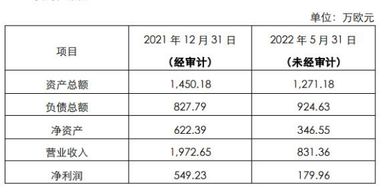 公告显示,标的公司主营业务为化妆品的研发、生产、销售,2021年度、2022年1-5月实现营业收入分别为1972.65万欧元、831.36万欧元,实现净利润分别为549.23万欧元、179.96万欧元;2021年末、2022年5月31日总资产分别为1450.18万欧元、1271.18万欧元,净资产分别为622.39万欧元、346.55万欧元。本次交易估值采用市场法为主,并辅以未来现金流折现法,经过交易各方协商一致确定。