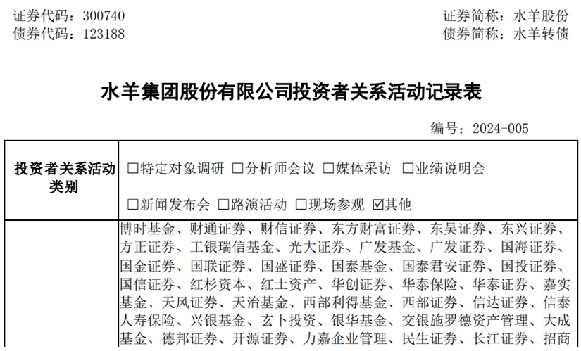 10月14日,上市公司水羊股份(300740.SZ)发布了《投资者关系活动记录表》,披露公司接待了博时基金、财通证券、财信证券、东方财富证券等数十家投资机构调研,公司董事长戴跃锋、董事会秘书吴小瑾参与并解答投资机构代表提问。