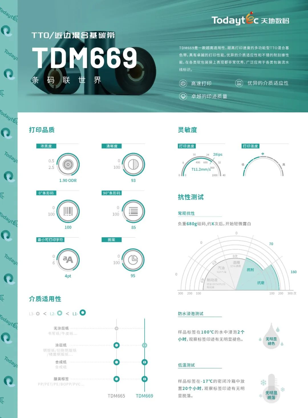天地数码携旗下多款备受市场欢迎的热转印色带,如高性能水洗树脂基碳带TDR382、TTO/近边混合基碳带TDM669、高性能增强蜡基碳带TDW135以及近期上市的通用型混合基碳带T209等产品惊艳亮相。这些产品凭借卓越的性能与创新的技术,吸引了大量客户驻足咨询,成为展会上的一大亮点。
