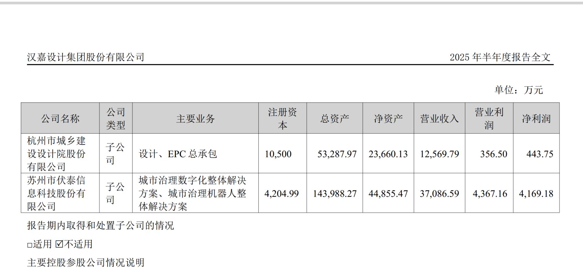 伏泰科技并入后,迅速成为汉嘉设计的主要业绩来源。在传统的建筑设计和EPC总承包业务大幅下滑的背景下,伏泰科技在2025年上半年贡献了合计约3.7亿元的营业收入和4169.18万元的净利润。