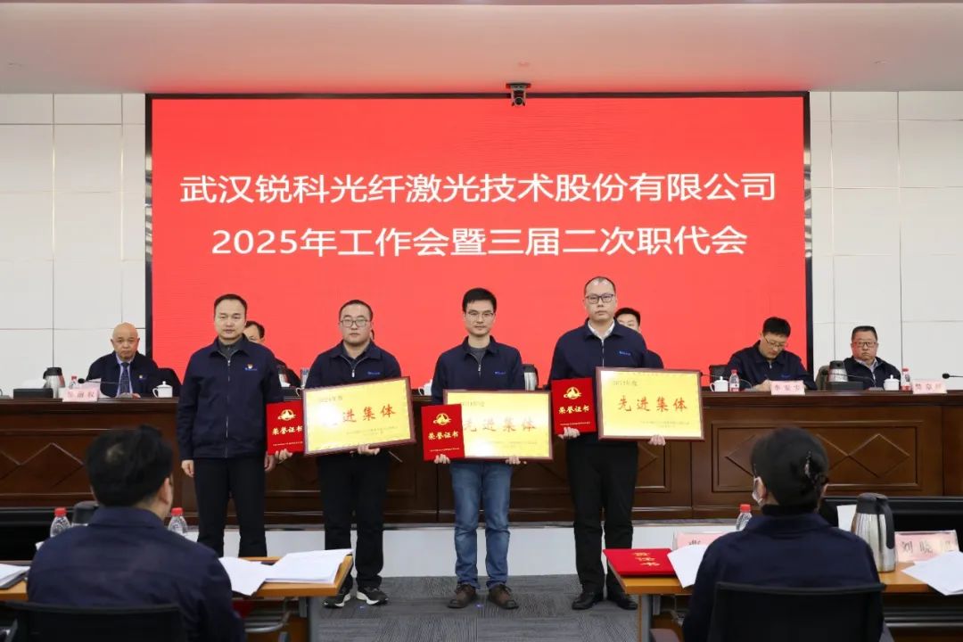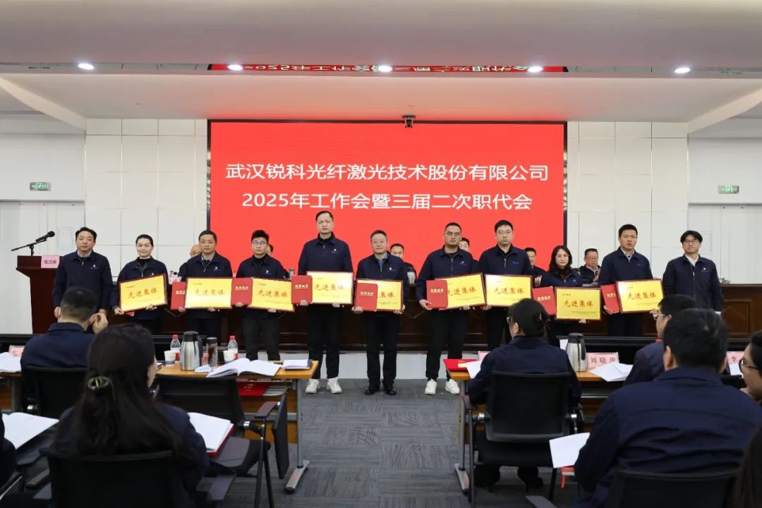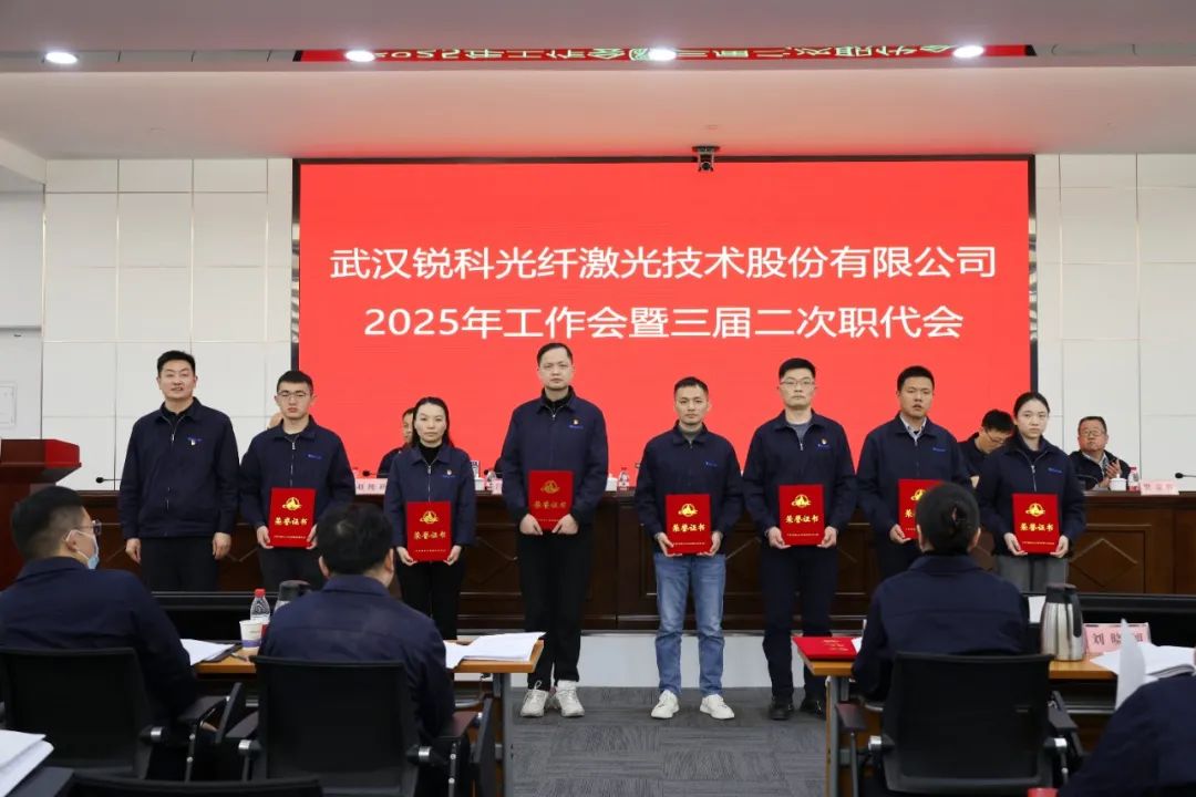 会议介绍了航天三江工作会议精神;颁发了2025年经营业绩责任书、全面从严治党责任书和安全生产责任书;审议通过了工作会报告决议、安全生产和职业健康专题报告、职代会提案落实及提案征集审查情况报告;现场转授了航天三江2024年度先进集体、先进工作者奖牌及证书,表彰了锐科激光2024年度先进集体、劳动模范、先进工作者,先进代表胡浩伟作了发言。