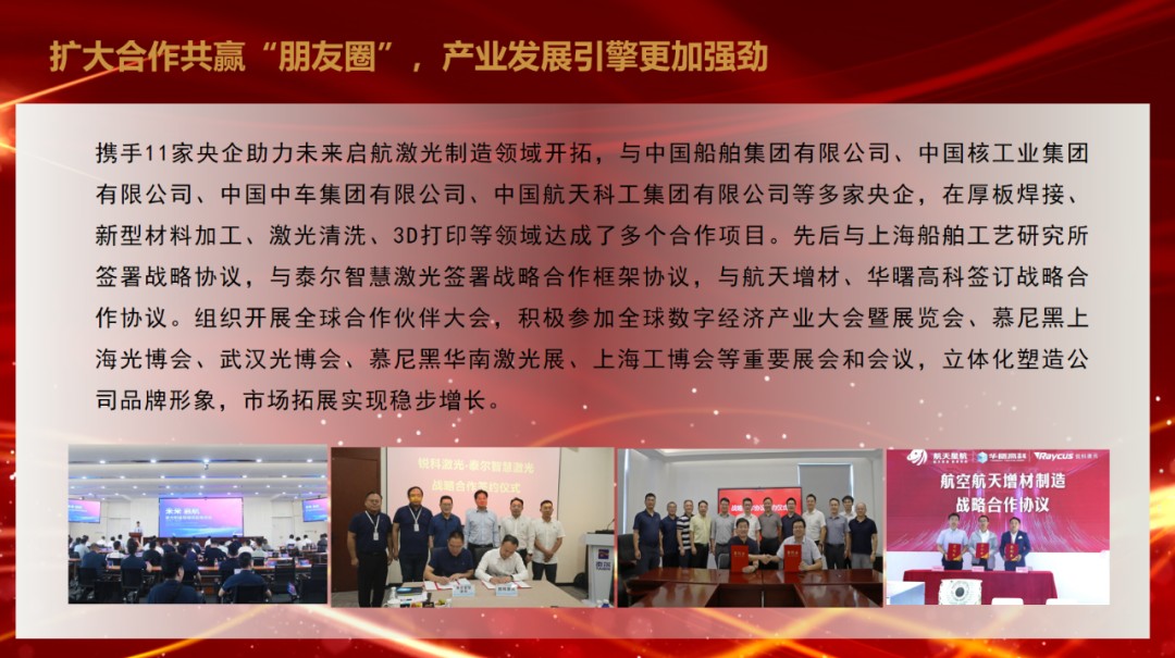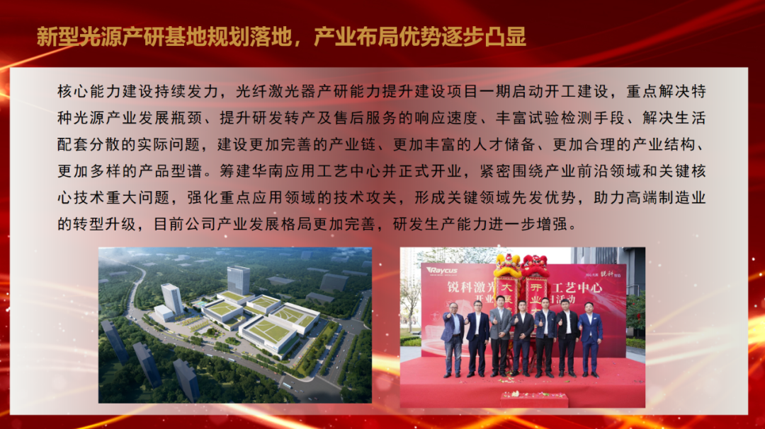 会议深刻分析了锐科激光当前面临的新形势新任务和存在的问题差距,提出了公司2025年“聚焦一个核心,实现一个确保,加快两个提升,推动三个转变”工作目标:以高质量发展为核心,确保完成年度经营目标任务;加快产品质量提升和成本管控能力提升;推动市场布局由传统市场为主向高端制造、未来制造和海外市场为主转变,推动产业结构由民用为主向民用与特种应用并重转变,推动产品以激光器为主向“激光器+”转变。
