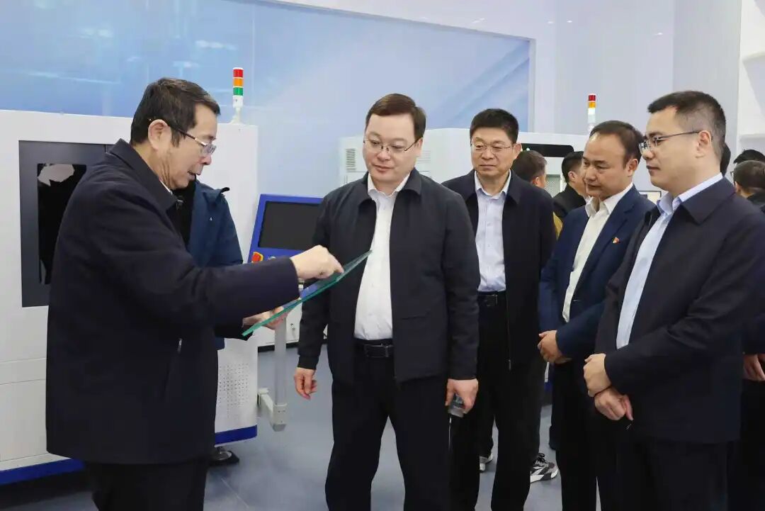 常映辉一行首先参观了 锐科激光 企业展厅,全面了解公司发展历程、核心产品线与产业布局。在应用工艺实验室,考察团现场观摩了激光玻璃内雕、激光切割、激光清洗、激光焊接等多种工艺演示,直观感受激光技术在效率、精度与环保方面的综合优势。
