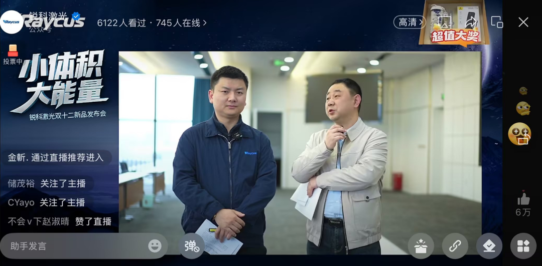 本次发布会通过“产品讲解+实时答疑”的形式,获得行业广泛关注。直播间内,主播和观众围绕产品优势、定制化服务、应用场景适配等问题积极提问,产品经理结合实际数据、应用案例,清晰阐释了新品在结构设计、光学性能、可靠测试等方面的技术优势,互动氛围热烈。此外,为回馈直播间粉丝一直以来的支持,锐科还定制了多重好礼为精彩加码。
