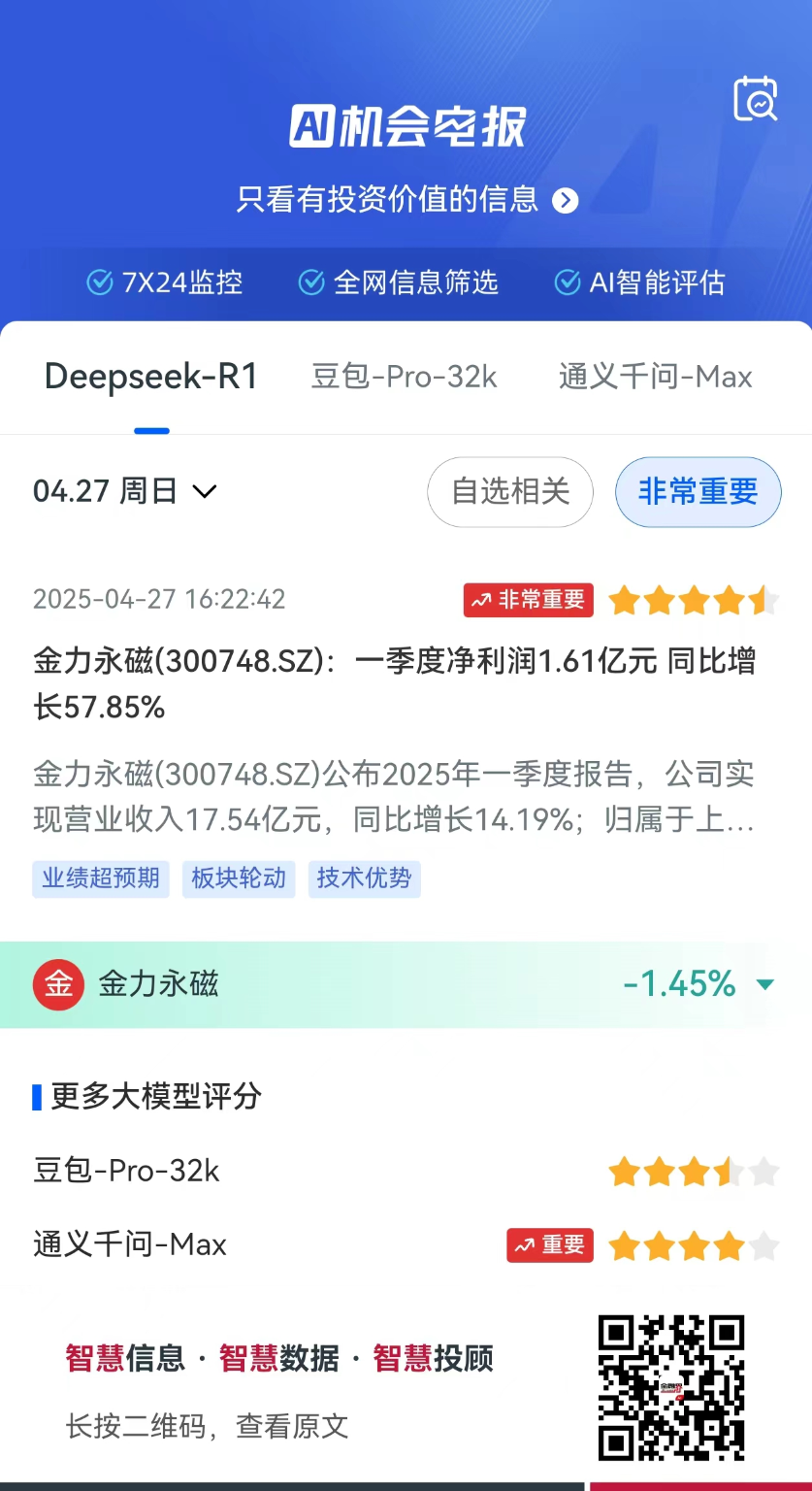 这份"含金量"十足的财报恰逢稀土永磁板块持续异动,4月23日该股单日振幅超15%,显示资金关注度骤增。作为全球重要的新能源车用磁材供应商,公司产品已进入特斯拉、比亚迪供应链。当前新能源车渗透率加速提升叠加风电装机回暖,双重需求驱动下,高性能钕铁硼磁材订单可见度较高。