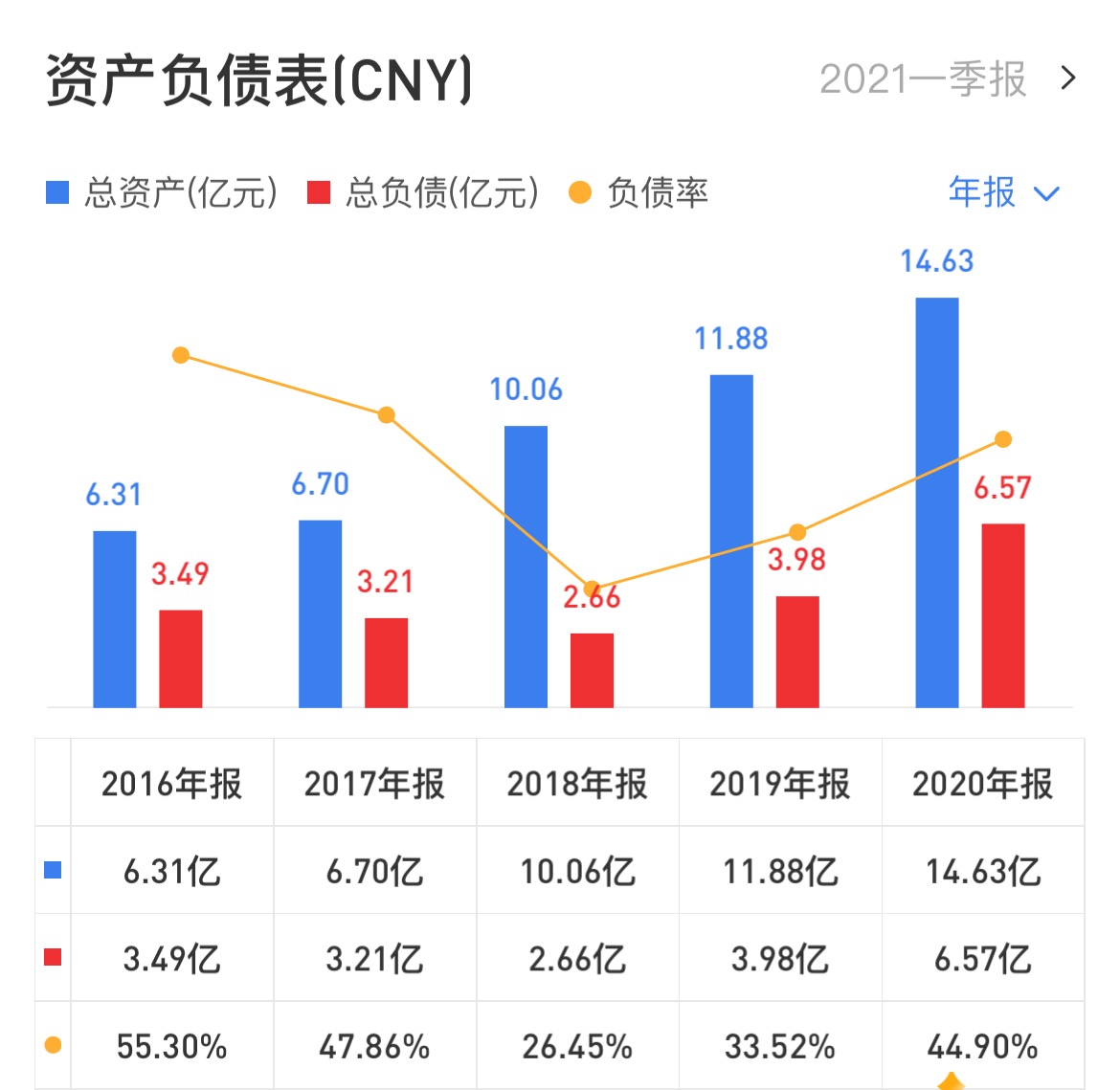 另一方面,顶固集创负债率连续上升。2018-2020年,顶固集创的负债率分别为26.45%、33.52%、44.90%。2020年,顶固集创的短期借款为1.52亿元,货币资金为4.37亿元。