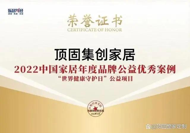 12月28日,2022(第六届)中国地产新时代盛典举行。顶固集创家居的“世界健康守护日”公益项目荣获“2022中国家居年度品牌公益优秀案例”。