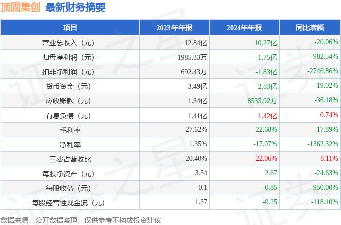 近期顶固集创(300749)发布2024年年报。根据财报显示,顶固集创净利润减982.54%。截至本报告期末,公司营业总收入10.27亿元,同比下降20.06%,归母净利润-1.75亿元,同比下降982.54%。按单季度数据看,第四季度营业总收入2.31亿元,同比下降38.29%,第四季度归母净利润-1.66亿元,同比下降1105.35%。
