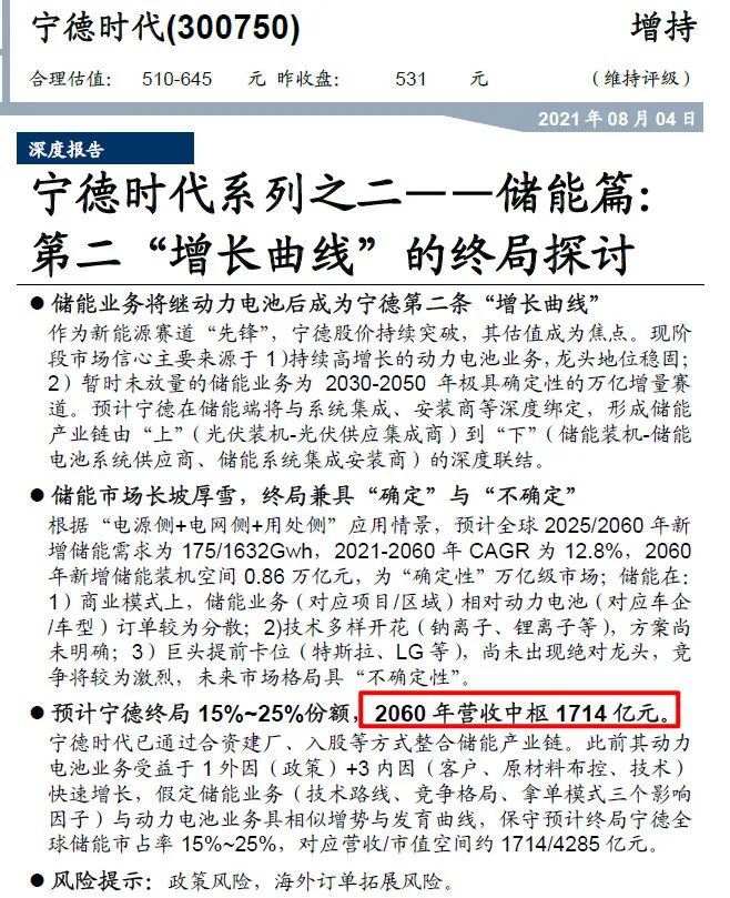 一些机构给宁德时代估值,几乎已经到了丧心病狂的地步,中信证券给出的目标价754元/股,还有券商将宁德时代的业绩评估到2060年。