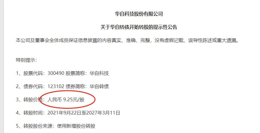 华自科技9月15日晚上还发布了转债即将进入转股期的消息,将于9月22日进入转股期。