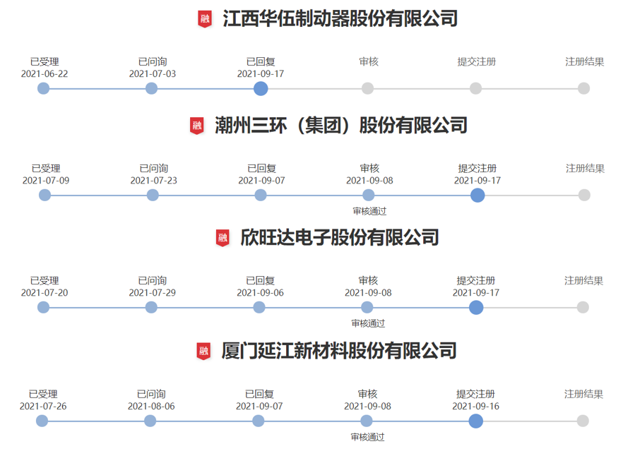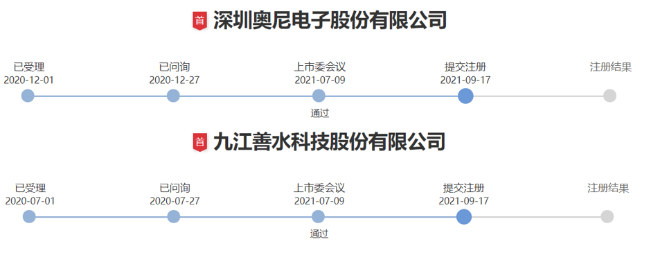 昨日至今新增奥尼电子等4家提交注册企业,无新增受理、问询、中止及终止企业。