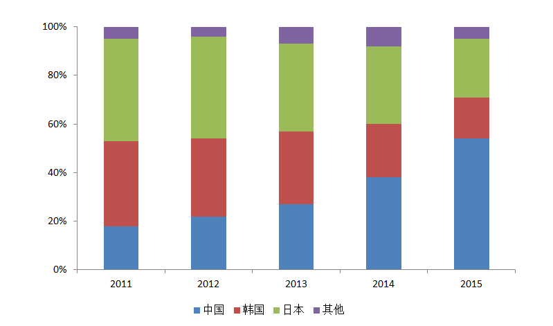 现在我国的动力电池产业可以说是全球风向标,但放在十年前,我们国家的动力电池队伍是处在行业尾部,跟日韩两国的全球市场份额完全没法比。凭借着集中力量办大事的能力,在国家政策的扶持下,中国动力电池企业强势崛起,从2011年算起,仅用4年时间,到2015年中国便成为了动力电池第一生产国,占据全球市场份额约54%。