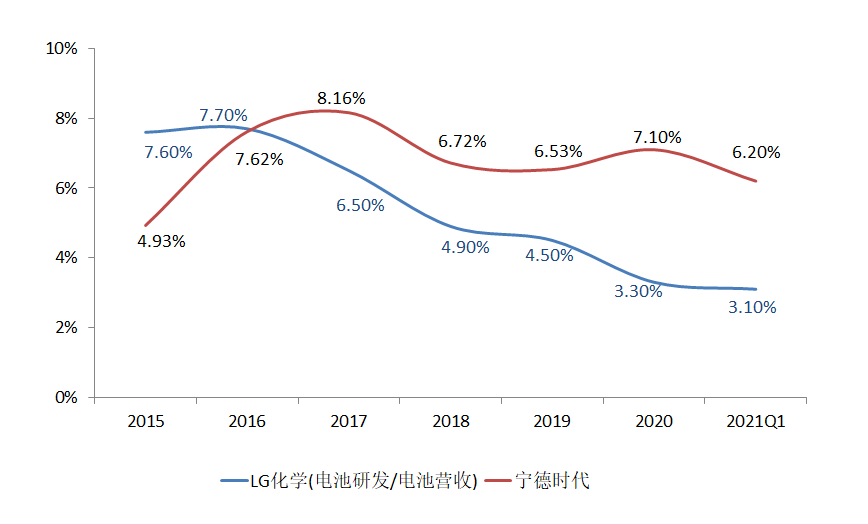 图9:LG化学与宁德时代研发费用率对比,资料来源:公司公告,公司年报