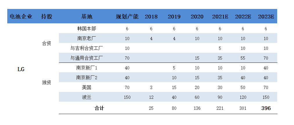 图7:LG化学产能规划(GWh),资料来源:SNE,公司公告