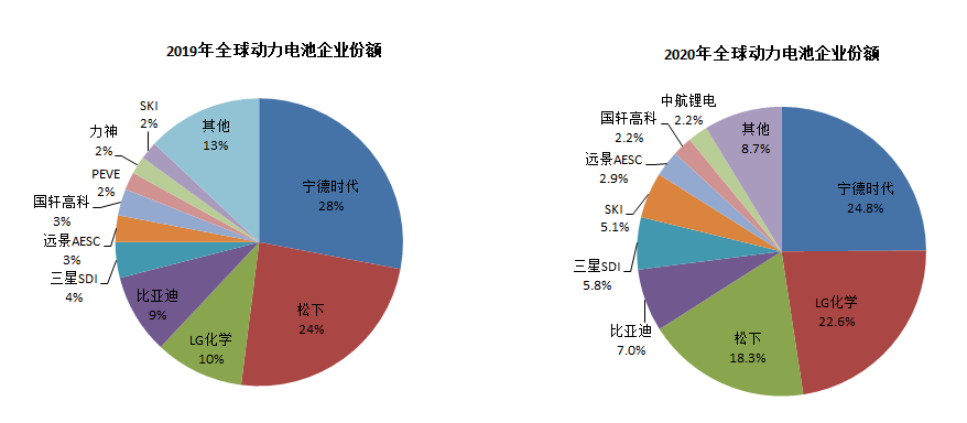 图3:2021年第一季度全球动力电池装机量及市占率,资料来源:SNE Research