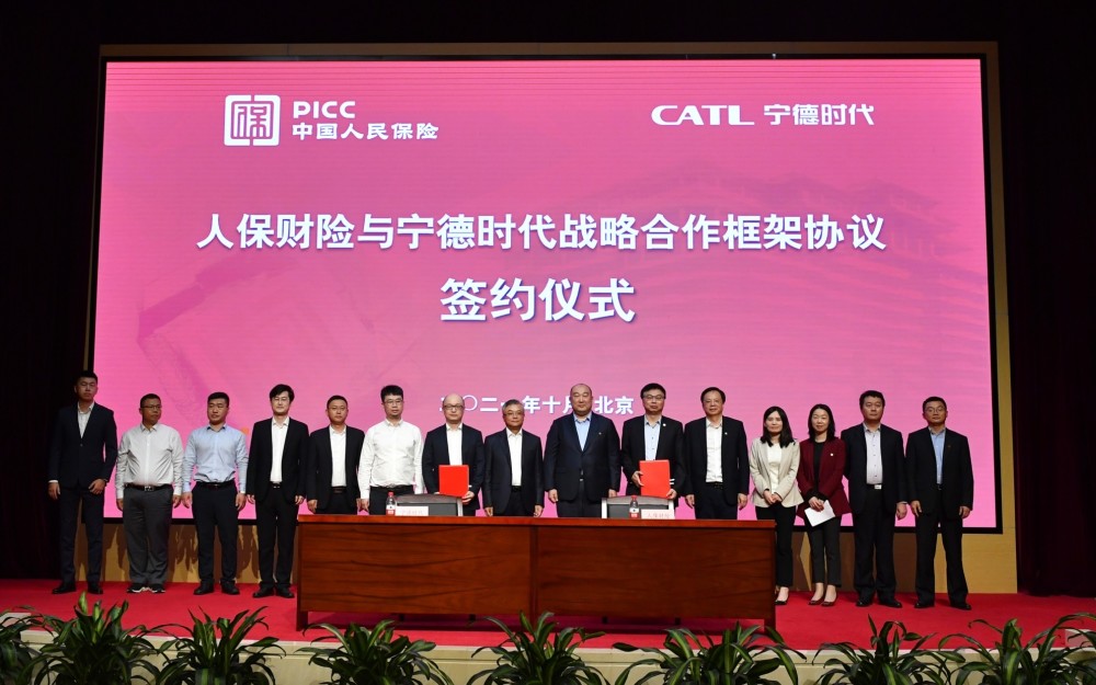 10月12日,中国人保财险与宁德时代签署战略合作框架协议。根据协议,双方此次合作将重点聚焦新能源汽车后市场领域,打造高效协同竞争优势,推动新能源汽车科技进步,助力实现“碳达峰”“碳中和”目标。