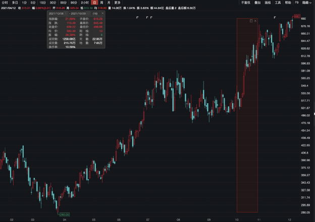 尽管基金在信披材料中并未给出“这只锂电龙头”公司的名字,但是机构人士认为这大概率就是第一大重仓宁德时代。Wind数据显示,宁德时代10月股价已经上涨了21.59%。根据信披材料,或许这只基金担心股价透支预期,因此选择了减持。