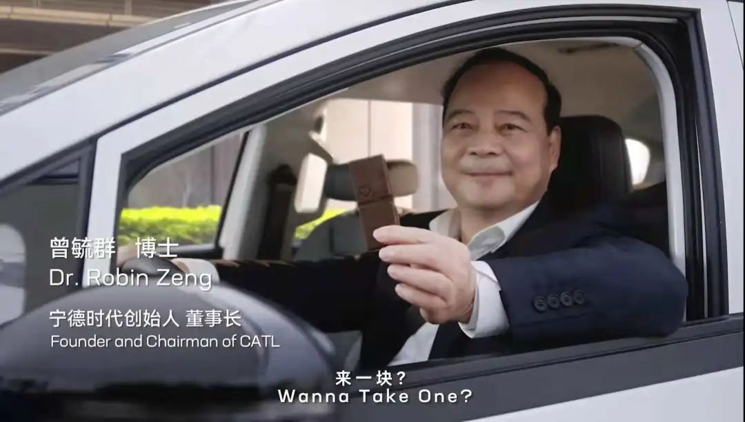 1月18日下午,宁德时代旗下公司时代电服在线上举行了首场发布会。视频中,宁德时代董事长曾毓群坐在车上,拿出一块巧克力,对着镜头说:“来一块?”
