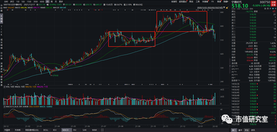 受益于新能源车浪潮,宁德时代站在了时代的风口上,估值2021年整体处于100倍以上,风险巨大。
