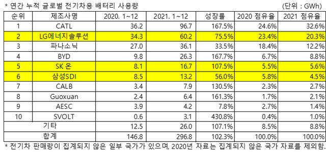 2021年,LG新能源交出了市场份额20.3%、装载量60.2GWh的答卷,并且紧紧抓住特斯拉、现代、大众汽车等巨头企业的订单。