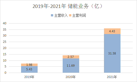 但优势不能化作利润,市场表现往往还是与真金白银挂钩:在2019年、2020年、2021年,储能系统产品分别达成主营收入5.43亿、11.69亿、31.38亿,逐年上涨;但是主营利润却上涨不大:1.98亿、2.57亿、4.43亿。